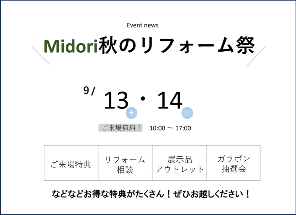 9/13(土)・9/14(日) 秋のリフォーム祭開催!
