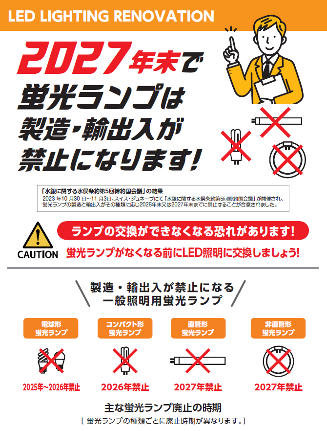みなさん、2027年から蛍光ランプが輸出入禁止になる事をご存じでしょうか?
