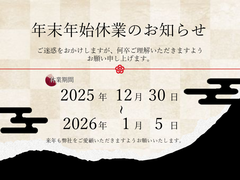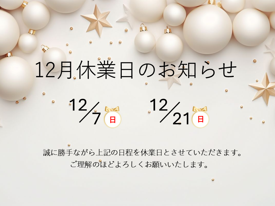 今回は12月・年末年始の休業日のお知らせをさせていただきます。