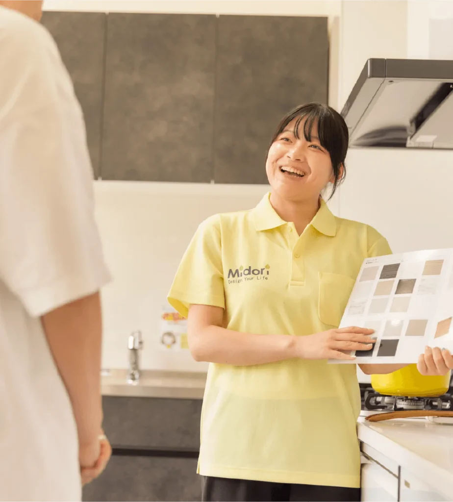 「お手入れがラクなキッチンにしたい」「広いバスルームが欲しい」など、お客様のご要望にあわせて商品提案やプランニングをいたします。