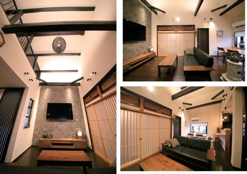 「思い入れの詰まった家だったので湯木さん・樫本さんのご提案で和室への出入り口の障子に以前の欄間とLDKの天井を取り除いたときにあらわれた梁の活用をして頂きました。」