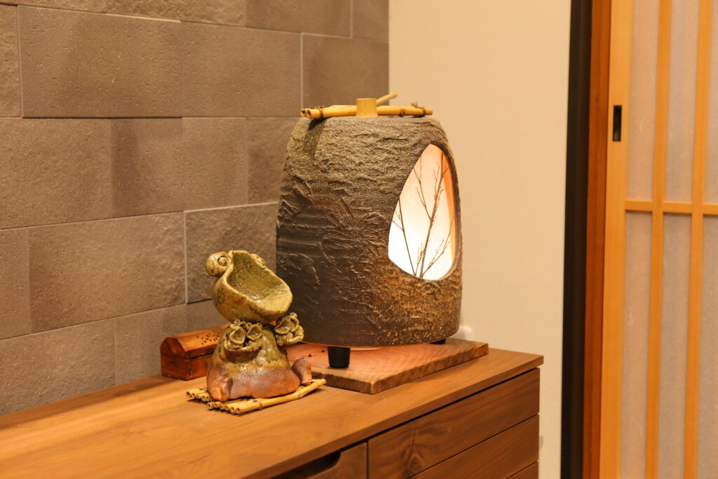 「洗面化粧台には、取り寄せた信楽焼のベッセルボールと桧のカウンターを組み合わせてもらうようお願いしました。」