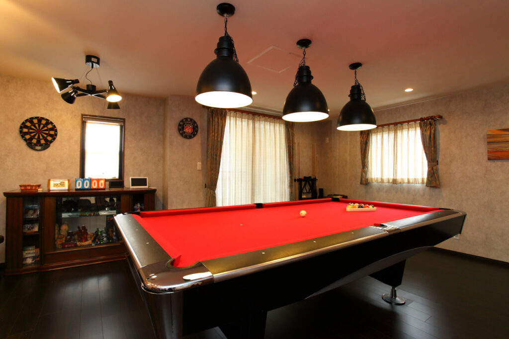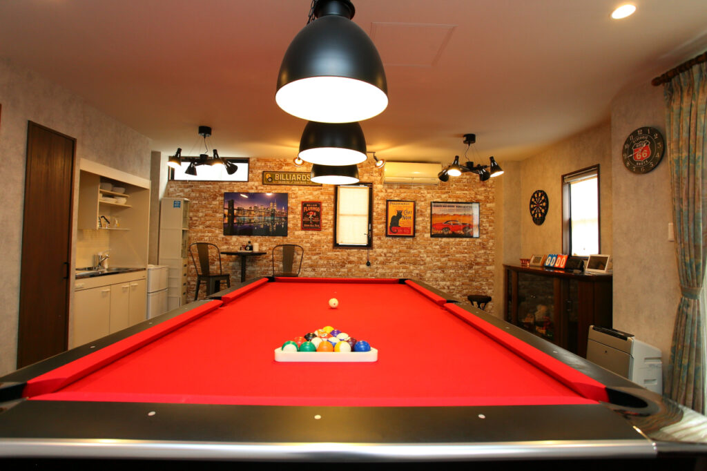 2階にご主人様の趣味のビリヤードができる夢とロマンが詰まった部屋。