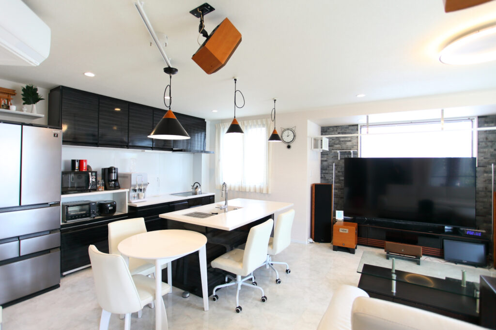 ミニキッチンも設置し、お酒を飲みながらダーツやビリヤードが楽しめる贅沢空間に生まれ変わりました。