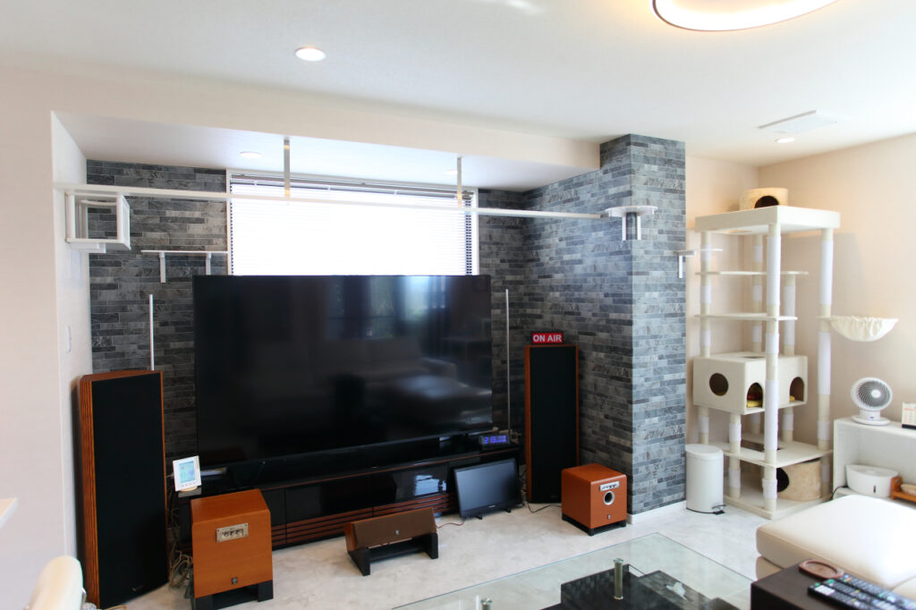 家族が集うリビングには、愛猫2匹のためにキャットウォークを設置。実際にキャットウォークを渡ってくれているとF様からお聞きして安心しました。息子さん家族を含めてみなさんで年に数回は集まるそうです。みんなでリビングでワイワイしながら食事ができるんじゃないかと楽しそうに今後の暮らし思い浮かべながら、笑顔でお話いただきました。