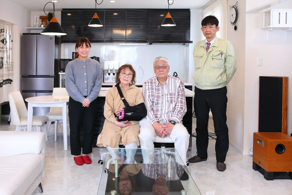 『広く見えるようにリビングの入口付近の壁をを斜めに角度をつけたり、照明をオートライトに変えたり、他にも2~3年前から色々考えていたことがすべて出来た。すごく便利になった。色々な要望に応えてくれて快適に暮らしています。』
