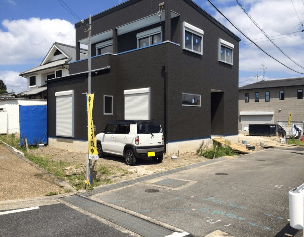 外壁の雰囲気に合わせ、ダークブラウンと白を基調にしたスタイリッシュモダンなエクステリア。