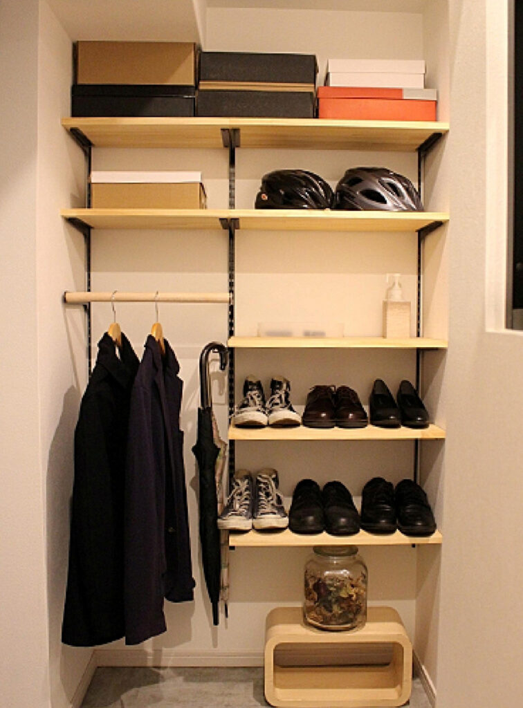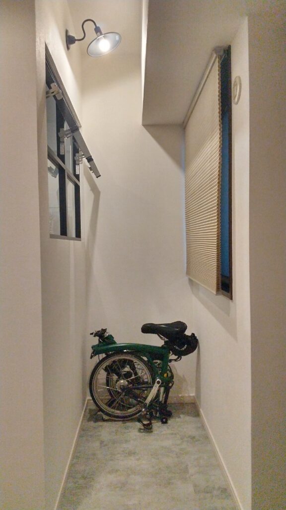 サービスルームの一部を土間に変え、上着・カバンなど外出グッズをひとまとめにできる空間に。ご主人の趣味の自転車も土間に収納できるスペースを確保しました。立地上、湿気が溜まりやすい物件である点も考慮し、土間とサービスルーム間には室内窓をプラス。玄関側からリビングダイニングへ風が通りやすくなっています。
